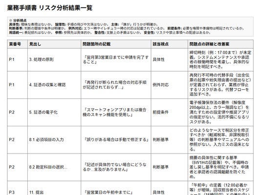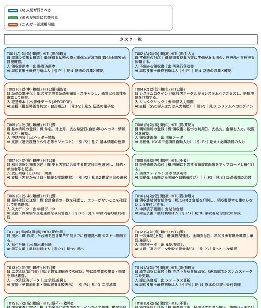 AI 導入助言(タスク一覧 : 業務手順書内のタスクについて、人間とAIの役割分担を示します)