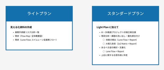 小さく始められるライトプランから本格的なDX推進に対応するスタンダードプランなど、お客様の体制・ご要望に応じて柔軟にサービスを提供いたします。