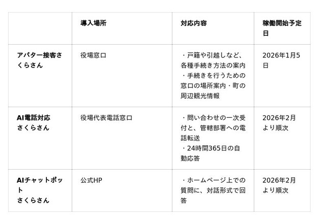 合同会社DMM.com(本社:東京都港区、イノベーションカンパニーCEO:緒方悠、以下DMM)は、地方創生事業において、三重県菰野町(町長:諸岡高幸、以下「菰野町」)と株式会社ティファナ・ドットコム(本社:東京都目黒区、代表取締役社長:森 博也、以下「ティファナ・ドットコム」)と協働して、町役場の総合案内をはじめ、電話窓口や公式サイトに「AIさくらさん」を導入します。