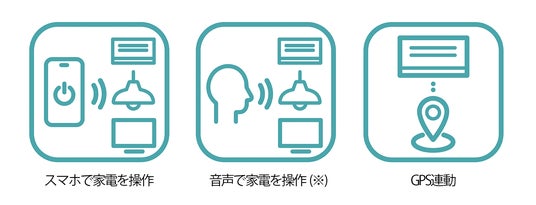 (※)主にiPhoneやAndroidスマホに搭載されているApple SiriやGoogleアシスタントに対応。別売りのスマートスピーカー、Amazon AlexaやGoogle Homeにも対応可能です。