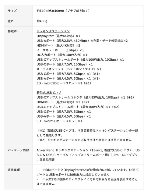 Anker Nano ドッキングステーション (13-in-1, 着脱式USB-C ハブ)
