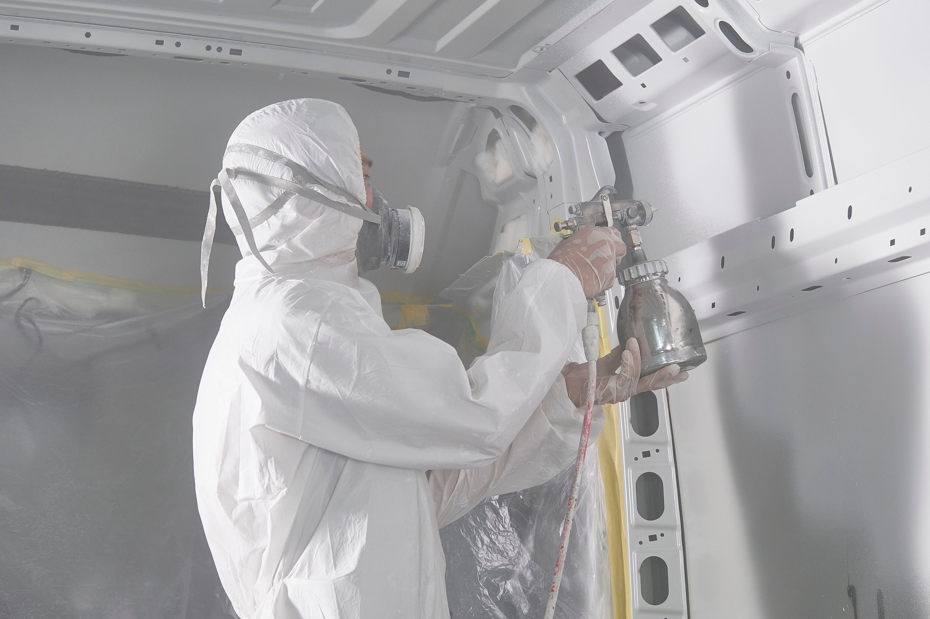 断熱セラミックGAINAを車体ボディ内部の細かい内側にまでスプレー塗装する事により、約0.8mmの非常に薄い塗膜で住宅用断熱材(グラスウール)100mm相当の高い断熱効果が得られます。