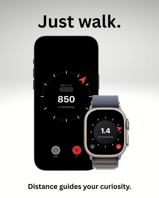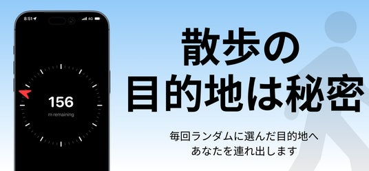 Wherewalkは、近くの目的地をランダムに選び、行き先の名前を明かさないまま、方角と距離だけで案内する散歩アプリです。いつもの道に飽きたときや、短い気分転換をしたいときに、新しい発見のきっかけを提供します。