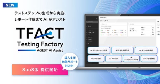 先端品質テクノロジーを活用してソフトウェアの品質・安全性向上を支援する株式会社AGEST(本社: 東京都文京区、代表取締役 社長執行役員 CEO: 二宮 康真、以下、「AGEST」)は、この度、AI機能を標準搭載した独自のテスト管理ツール「TFACT(ティファクト)」SaaS版を本日より提供開始します。