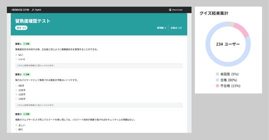 HENNGE株式会社(本社:東京都渋谷区、代表取締役社長:小椋 一宏)は、クラウドセキュリティサービス「HENNGE One」において、標的型攻撃メール対策を実践的に学べる新機能「Tadrill(タドリル)e-Learning」を2026年2月(予定)に提供開始することをお知らせします。これにより、従来機能の「訓練・報告」に「教育」が統合され、ランサムウェアをはじめとする巧妙なサイバー攻撃に対する組織全体の対応力を、より一層底上げすることが可能となります。