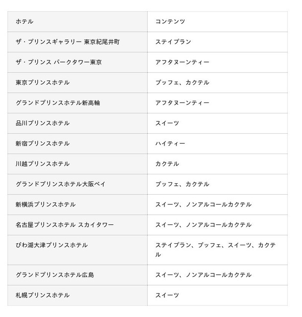 ※グランドプリンスホテル大阪ベイ、びわ湖大津プリンスホテルの表記料金には、消費税・サービス料が含まれております。