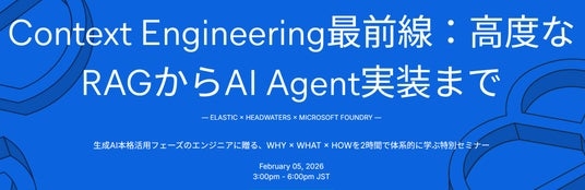 AIソリューション事業を手がける株式会社ヘッドウォータース(本社:東京都新宿区、代表取締役:篠田庸介、以下「ヘッドウォータース」)は、Elasticsearch株式会社(以下「Elastic」)、日本マイクロソフト株式会社(以下「日本マイクロソフト」)とともに、次世代AI基盤の構築に不可欠な要素技術と実践知を共有する特別セミナーを開催します。
