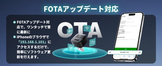 本製品はFOTA(無線アップデート)に対応しており、インターネット経由で簡単に最新ファームウェアへ更新できます。