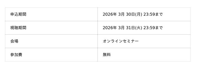 2026年3月31日(火)までオンデマンド配信します。お申し込みは3月30日(月)まで受け付けています。