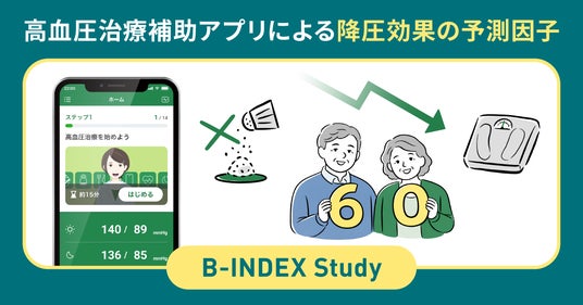 株式会社CureApp(キュア・アップ / 本社:東京都中央区 代表取締役社長:佐竹 晃太以下、当社)が関与した、高血圧治療補助アプリを用いた多施設介入研究「B-INDEX(The Behavioral Modification INDEX)研究」の成果が、米国心臓協会(AHA)が発行する医学雑誌「Hypertension」に掲載されたことをご報告いたします。本研究は、治療アプリがどのような患者さんに、どのような条件で効果を発揮しやすいのかを、日々の実測データを用いて明らかにしたものです。