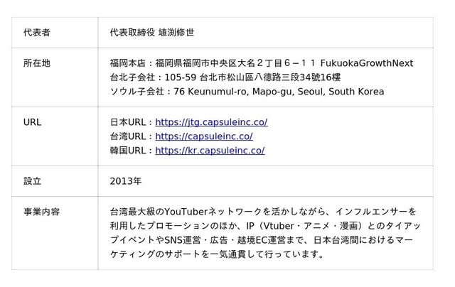 <カプセルジャパン株式会社 会社概要>