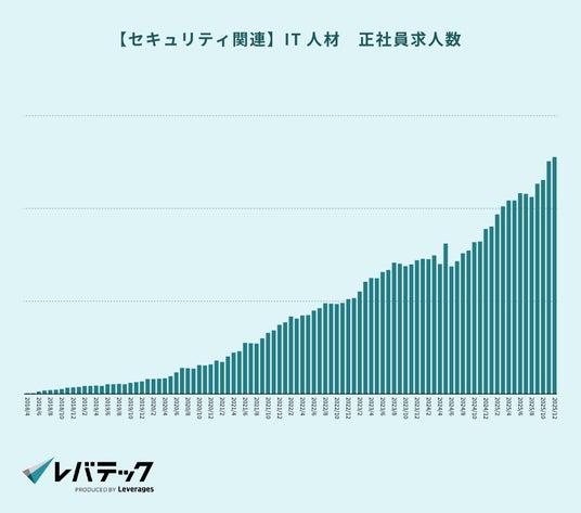 - セキュリティ関連求人数は直近3年で約2.5倍に増加、求人倍率は42倍超え