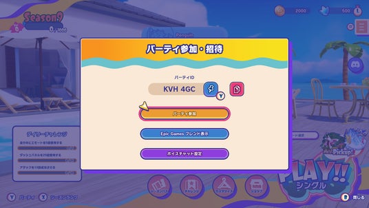 ※Epicアカウントとの連携を行うと、Epic Gamesアカウントのフレンドリストを使用してパーティに誘うことができます。