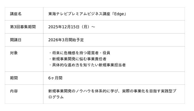 「Edge」は、東海テレビが2025年3月より開始した、法人向けの新規事業開発プログラムです。