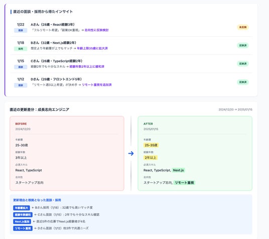 - ペルソナ・判断基準を口頭で共有 → 構造化してシステム上でチーム全体に共有