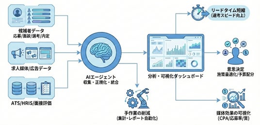 - データ統合:採用媒体・ATS・経理システムを横断的に統合し、媒体別ROIを即時に提示