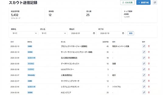 - スカウトの効果を感覚で判断 → 返信率・面談化率を自動算出、成功パターンを抽出