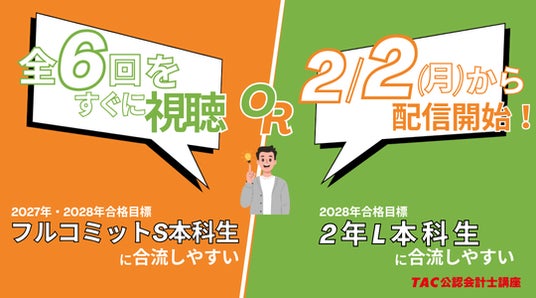 公認会計士受験指導で圧倒的な実績を誇る「資格の学校TAC」(以下、TAC)は、財務会計の計算スキルに特化した『財務会計論入門計算 全6回講座』の無料体験キャンペーンを開始いたします。■概要