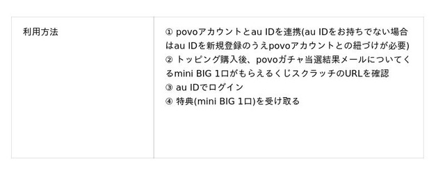 ■「povoガチャ au PAY toto ~mini BIGプレゼント~」について