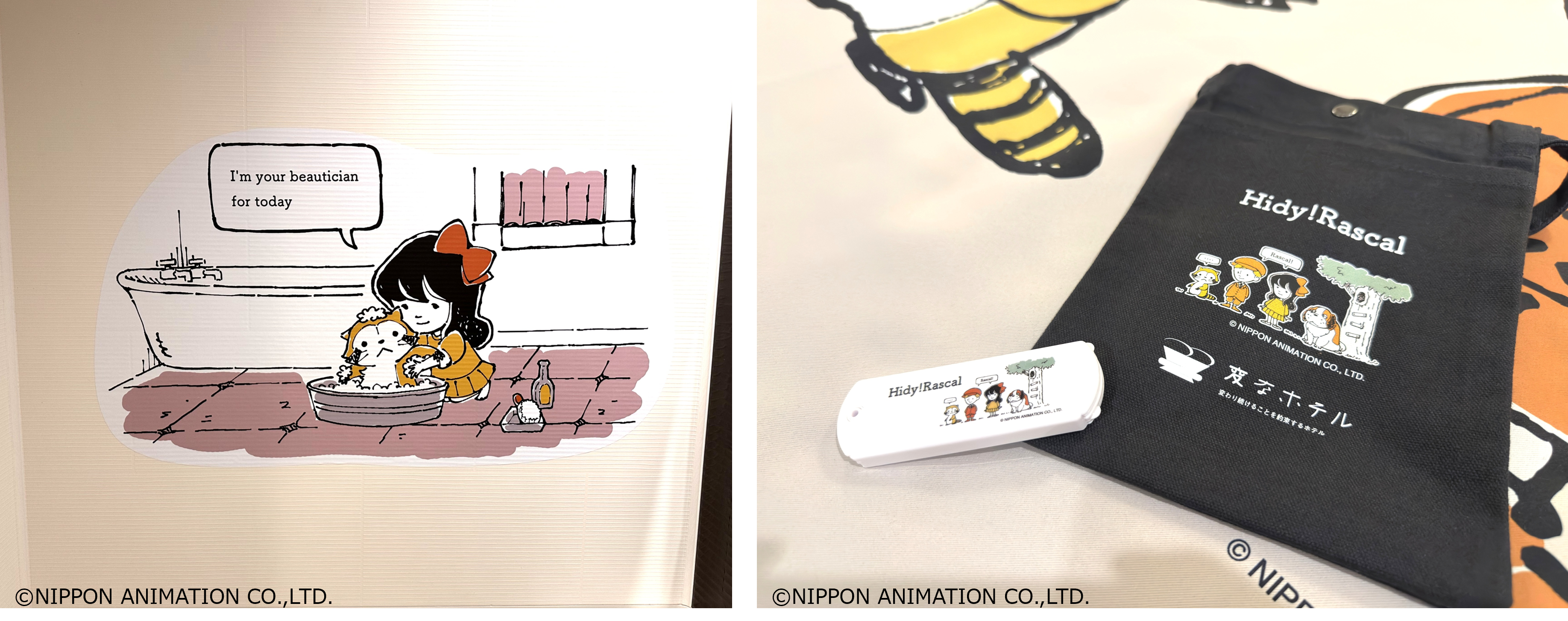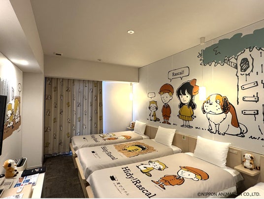 「Hidy!Rascalルーム」は、やんちゃで好奇心旺盛な『ラスカル』と一緒に過ごす特別な滞在体験をテーマに、客室の壁やベッド、ドアを『Hidy!Rascal』で飾り、ラスカルのぬいぐるみを設置しています。ご宿泊のお客様には、変なホテルオリジナルのサコッシュをプレゼントします。また、客室内にご用意したスライドパズルを完成させたお客様には、ヘアコームもプレゼントします。さらに、「Hidy!Rascalルーム」にご宿泊いただき、あわせて2月6日(金)~2月18日(水)にルミネエスト新宿B1階 中央東改札外券売機横で展開する「Hidy!Rascal POP UP SHOP」にご来店いただくと、特別なノベルティをお受け取りいただけます。(詳細は「Hidy!Rascal」特設サイトにてご案内します。)「Hidy!Rascalルーム」の価格は、朝食付き21,300円~、素泊まり19,300円~(いずれも1室1泊、税サ込)