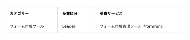 formrunの受賞カテゴリ-フォーム作成ツール: