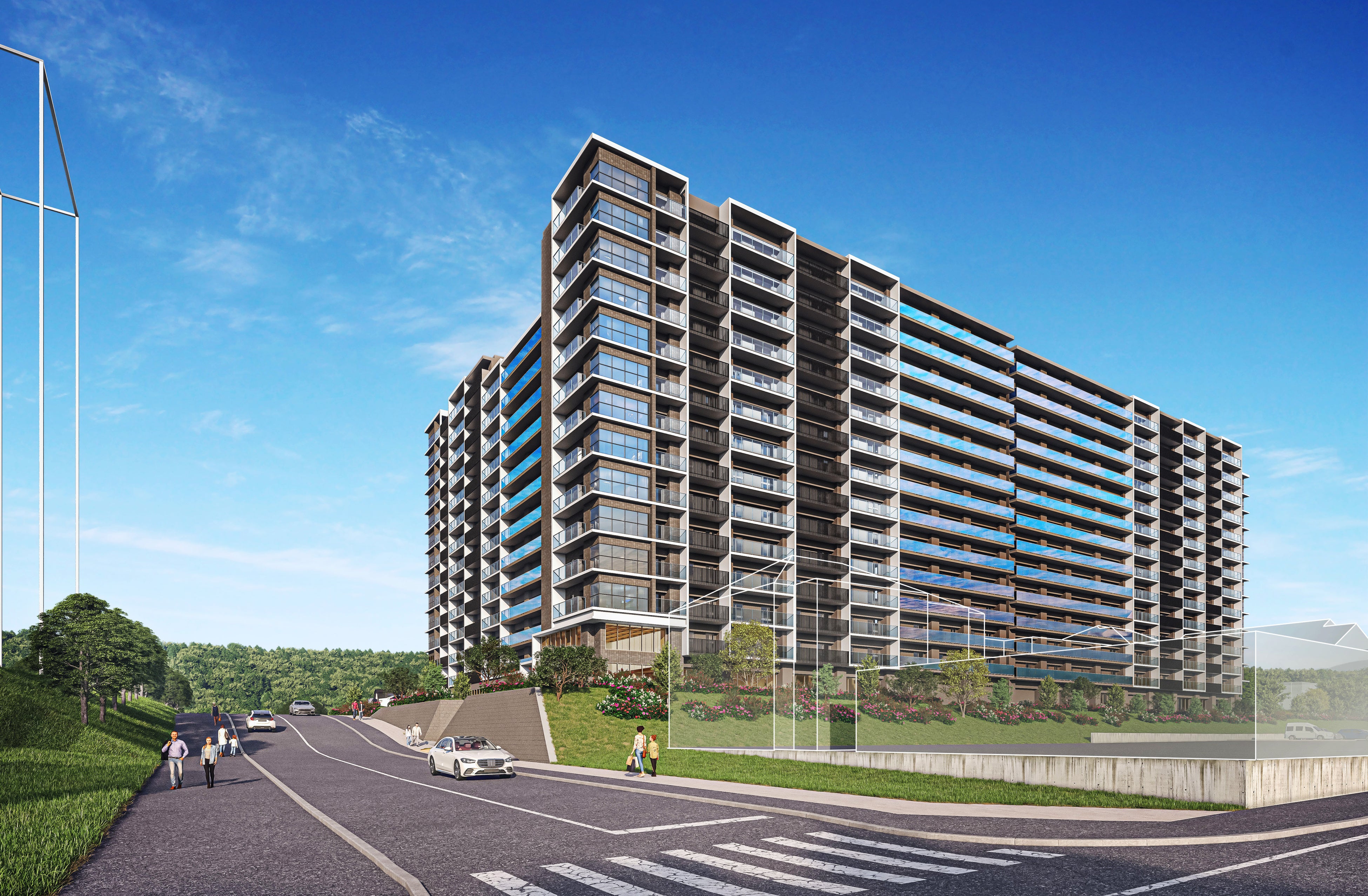 本計画は、延床面積約45,000平方メートル 、鉄筋コンクリート造地上14階建て、全619邸を予定している大規模開発物件です。専有部は、1K・1LDK・2LDK・3LDKで、単身者からファミリー層までの幅広い家族構成に対応した間取り構成としております。また、様々なライフスタイルに対応するため、共用施設として入居者専用のラウンジやジム、大浴場などを計画するとともに、入居者の安心・安全、利便性をテーマとした多様なサービスの導入を予定しております。
