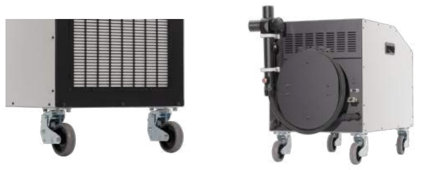 空冷方式を採用したキャスター付きのコンパクトボディにより、優れた可搬性を実現しています。