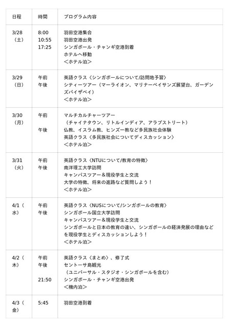 ・URL:シンガポール・アカデミックツアー7日間