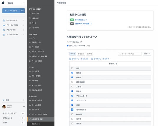 既に提供しているメモ単位での制御と組み合わせて、柔軟で安全なAI活用を実現しています。