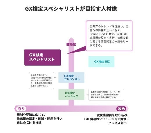 また、2023年6月に開始した「GX検定」シリーズは、これまでに570以上の企業・自治体で導入され、環境省認定の「ベーシック」「アドバンスト」を通じて累計約9,700名の脱炭素人材を輩出しています。そして今回、最上位の「スペシャリスト」が日本初のシニア認定を受けたことで、3つのレベルを網羅する一気通貫の育成ラインアップが完成しました。特に「GX検定 スペシャリスト」は、難度の高いスコープ3の算定から削減目標の設定、実行支援までをリードできる実戦的な人材を育成し、日本の産業界全体のGX推進と、企業の持続的な成長に貢献してまいります。