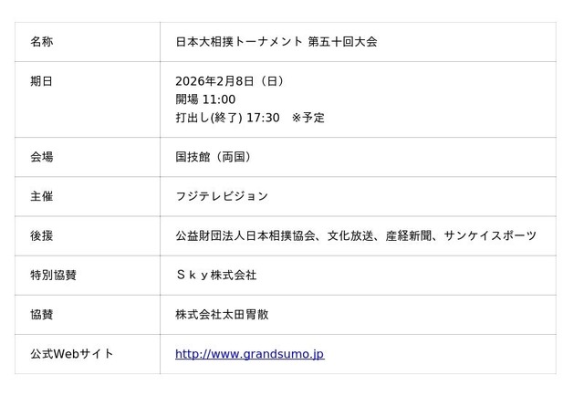 「日本大相撲トーナメント 第五十回大会」公式Webサイト