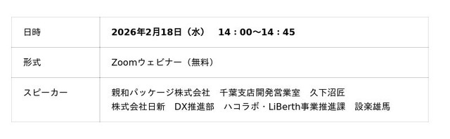 株式会社日新(神奈川県横浜市、代表取締役社長:筒井雅洋、以下当社)は、親和パッケージ株式会社と共催でオンラインセミナーを実施することをお知らせします。