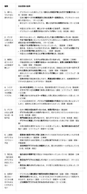 デジタル化で困った経験や問題についての自由回答