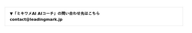 「ミキワメAI AIコーチ」は、「あなた(個人の性格・ありたい姿・達成したい成果)」「周囲(他者評価)」「会社(期待・戦略)」の情報をAIが統合し、個人の成長と組織貢献に伴走するサービスです。 ミキワメAIの「人の内面を理解する技術」に加え、上司や同僚からのフィードバック、会社の経営戦略などをAIが総合的に解釈したパーソナライズAIが、その人だけに最適化された成長戦略を提示します。単なる分析にとどまらず、日々の行動計画の策定から実行、振り返り、軌道修正までをAIが常時伴走して支援することで、研修や面談だけでは難しかった実効性のある「行動変容」を実現します。 「人から言われると受け入れにくい指摘」も、客観的なデータに基づきAIが伝えることで冷静な内省を促せる点が特徴です。経営視点を持った幹部の育成や、次世代リーダーの自律的な成長サイクル構築に活用されています。▷問い合わせ先:[email protected]