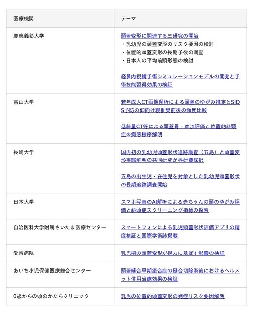 - 乳幼児頭蓋変形の共同研究を3年連続で公募