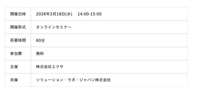 - 取得した個人情報については、主催企業間においてイベントに関するお問い合わせならびに主催各社個別毎の今後のセミナー情報・商品情報などの告知のため共同利用させていただきます。