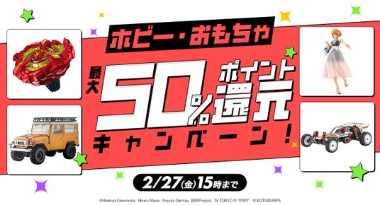 合同会社DMM.com(本社:東京都港区、PFカンパニーCEO:村中悠介、以下DMM)が運営する「DMM通販」は、2026年2月2日(月)15:00より、ホビー・おもちゃ約2万点の商品を対象としたDMM ポイント最大50%還元キャンペーンを実施いたします。