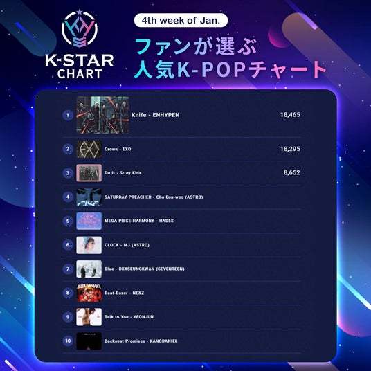 また、同日のチャート投票では、ENHYPENによる「Knife」が1位を獲得し、番組内でも紹介されました。
