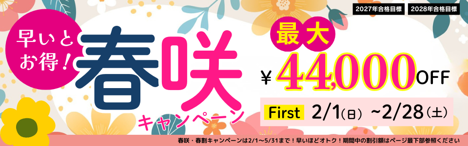 2027・2028年合格目標の対象コースが通常受講料から最大¥44,000OFFでお申込いただけます。