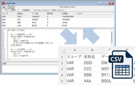 エクスポート(CSV形式対応)、LD設計画面の拡縮操作、ウィンドウ一体化により、INTALOGIC5 Editorの操作性を強力に改善します。