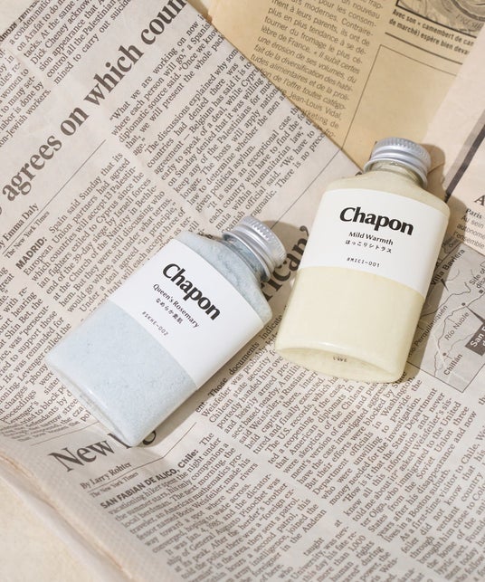 Chaponは「今日の疲れを癒やしたい」そんなバスタイムに寄り添う、植物エッセンスたっぷりの天然アロマ入浴剤として誕生。「喧騒忘れる、しあわせタイム。」というブランドコンセプトのもと、天然アロマ100%の贅沢な香りで忙しい日常を忘れる、特別なくつろぎの時間を提供しています。累計販売本数は25万本を突破。三越伊勢丹やBIRTHDAY BARなどの全国のギフト専門店で取扱開始。バスソルト初グッドデザイン賞受賞、Amazon・楽天 部門ランキング1位獲得。