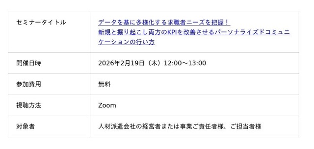 ・広告費を増やしても新規登録者数や応募数が思うように伸びず悩んでいる方・一斉配信メールやWeb広告など、求職者アプローチが単調になってしまっていると感じている方