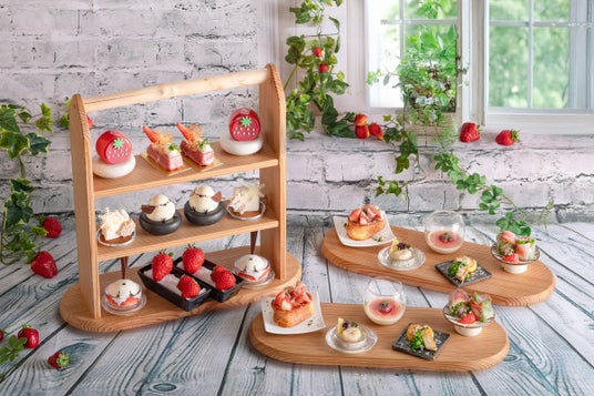 スイーツのいちごには、近鉄百貨店が直営する「はるちかファーム」で栽培した「はるかすまいる」を使用し、いちごの食べ比べには、「はるかすまいるの紅ほっぺとベリーポップすず」をご用意し、それぞれの味・香りの違いを感じていただけます。また、北海道の豊かな大地が育んだ食材や北海道産生クリームやチーズなどを使用し、素材本来のコクと風味を引き立てた上品な味わいに仕上げています。セイボリーにも北海道食材を使用し全体の調和を意識しました。素材の美味しさを味わうアフタヌーンティーをぜひお楽しみください。