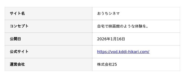 通信インフラ事業と地域振興事業を手掛ける株式会社ALL CONNECT(代表取締役社長:岩井 宏太/本社:福井県福井市)のグループ会社である株式会社25は、動画配信サービス(VOD)の比較や作品の配信情報など、エンターテインメントに関する役立つ情報を発信するWebメディア『おうちシネマ(https://vod.kddi-hikari.com/)』の本格運用を開始いたしました。