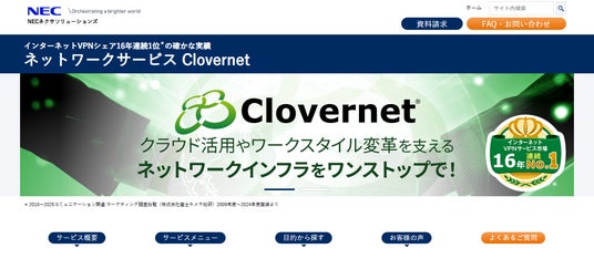 NECネクサソリューションズ株式会社(本社:東京都港区、代表取締役執行役員社長:木下 孝彦、以下 NECネクサソリューションズ)のマネージドネットワークサービス「Clovernet(クローバーネット)ネットワークサービス」が、株式会社富士キメラ総研(本社:東京都中央区、代表取締役社長 稲葉視朗)刊行の「2025コミュニケーション関連マーケティング調査総覧」の「インターネットVPNサービス」調査結果において、回線数16年連続マーケットシェア1位(注)を獲得しました。