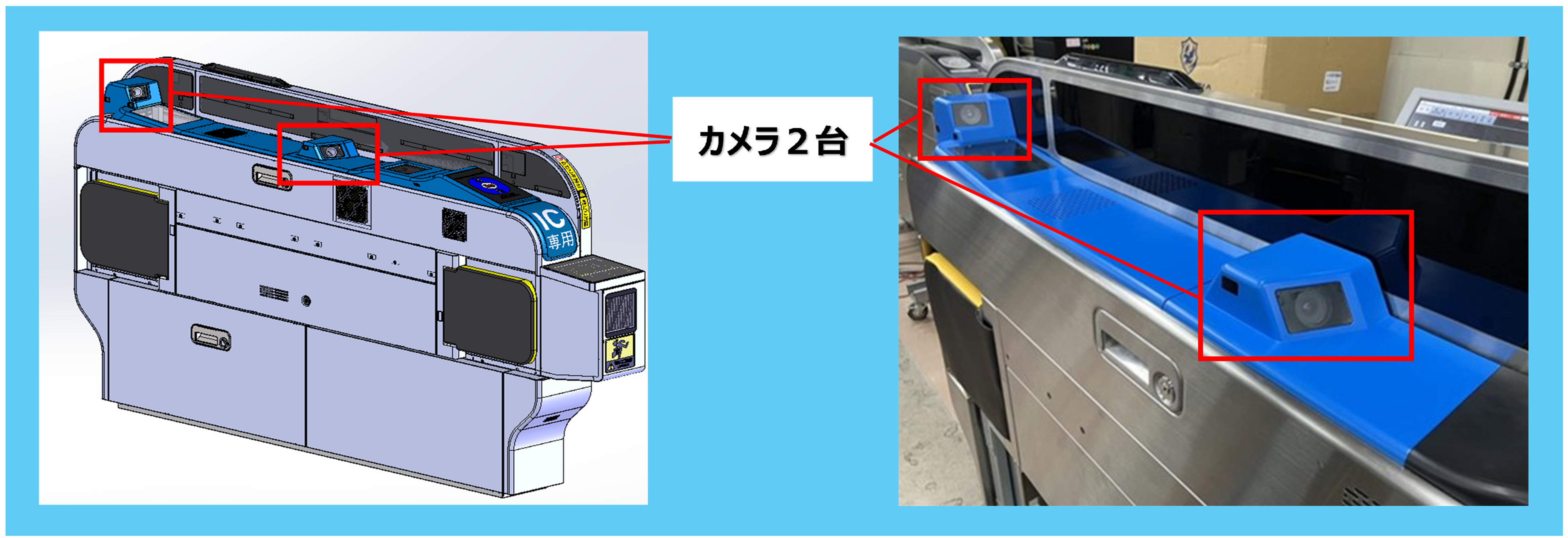 ・対象改札機の入場側・出場側の双方にカメラを設置し、同改札機を通過する画像を常時撮影します。