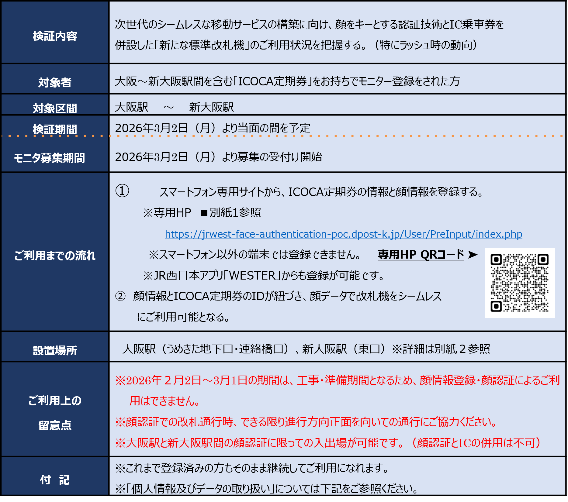 ※これまでご利用いただいていた顔認証改札機(うめきた地下口改札と新大阪東改札)は撤去いたします。