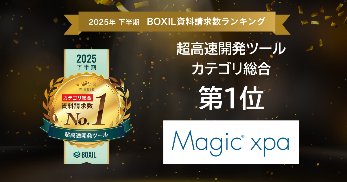 マジックソフトウェア・ジャパン株式会社(本社:東京都新宿区、代表取締役社長:佐藤 敏雄、以下:マジックソフトウェア)が提供するローコード開発プラットフォーム「Magic xpa」は、スマートキャンプ株式会社(以下「スマートキャンプ」)が運営するSaaS※1比較サイト「BOXIL」において発表された「2025年下半期 BOXIL資料請求数ランキング」の超高速開発ツールカテゴリ総合1位に選出されました。