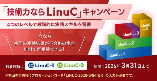 「LinuC(リナック)」は、IT技術者を成長に導くLinux技術者認定のデファクトスタンダードです。実務に即した知識とスキルを段階的に習得できるよう、4つのレベルで体系的に試験が構成されています。