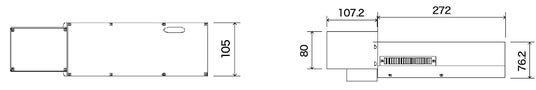このコンパクトな筐体(W105 × D379.2 × H110 mm)に、コントローラー・電源を内蔵しており、設置スペースを大幅に削減することができます。AC100~240 V電源に対応し、低消費電力(120 W以下)で運用できるため、最小コストでの設置・運用が可能です。